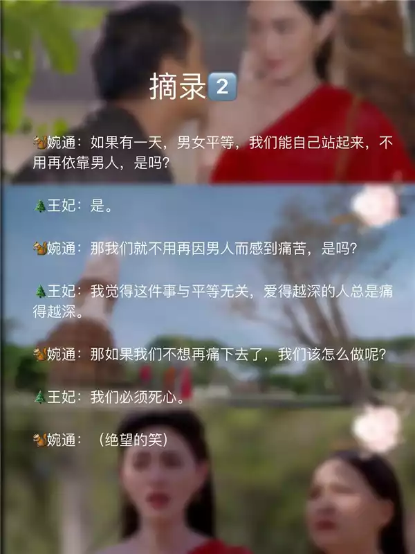 3⃣️但是后来听婉通讲他们的故事,我才明白,有些爱是即使无法在一起,也会深埋心底而丝毫不减的,只会默默关心着对方,担忧着对方,自己忍受一切折磨和流言。