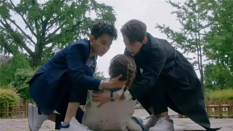 不仅在男主前面各种“意外”摔,男二同样也有机会跟女主亲密接触↓