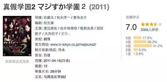虽然是低成本制作的深夜剧,主演是一群几乎没有演戏经历的少女偶像,第一、二季在豆瓣评分却有 7.1 和 7.0 ▼