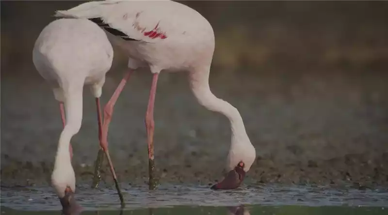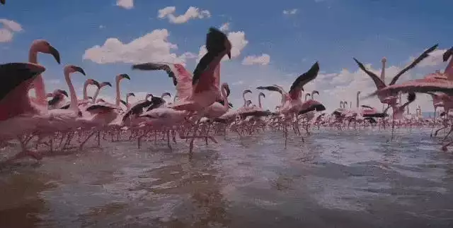 湖水中有一种叫螺旋藻的高蛋白藻类,是火烈鸟最爱的食物之一。