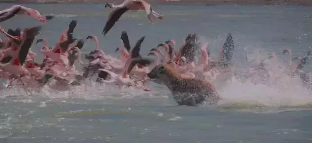 当然,求偶的过程也伴随着各种危险,成群聚集的火烈鸟会成为斑鬣狗捕食的目标。