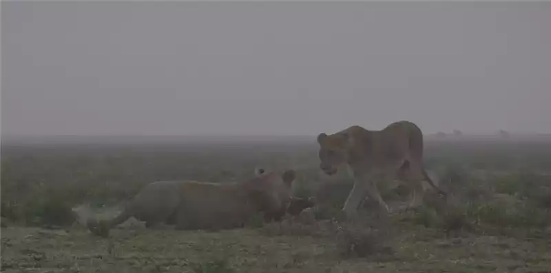 塞伦盖蒂的狮子们早已饥饿难耐,它们拥有极佳的视力,在薄雾中也能看清猎物。
