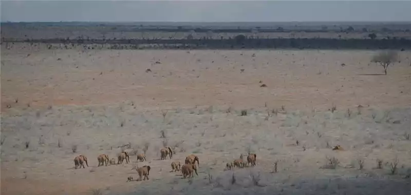 因为一头成年的大象每天要吃130多公斤的植物,而干旱让这里的植被稀疏。