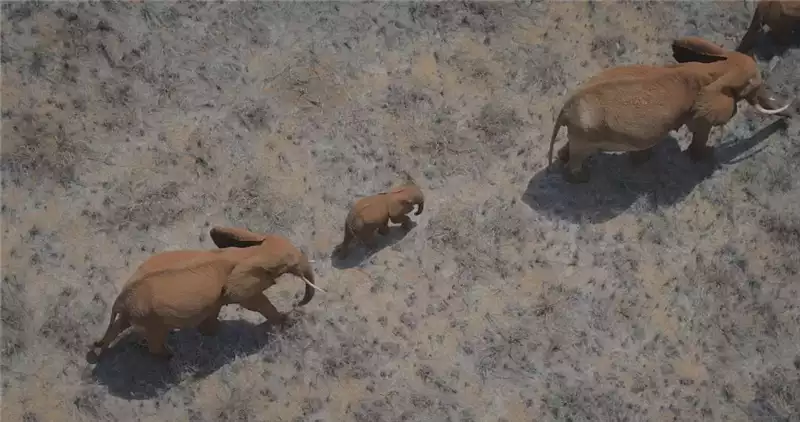 为了寻找新的绿洲,象群不得不进行一次大迁徙。
